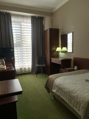 Этот уютный номер эконом-класса, выполненный в классическом стиле и нежных пастельных тонах, предлагает вам все необходимое для приятного пребывания. В номере установлена удобная полутораспальная кровать с ортопедическим матрасом, обеспечивающая здоровый и крепкий сон.
