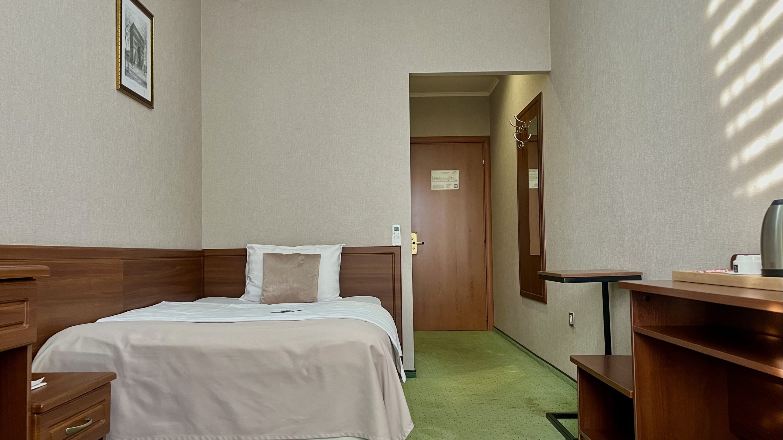Этот номер — практичное решение для одноместного проживания, сочетающее в себе уют, функциональность и внимание к деталям.