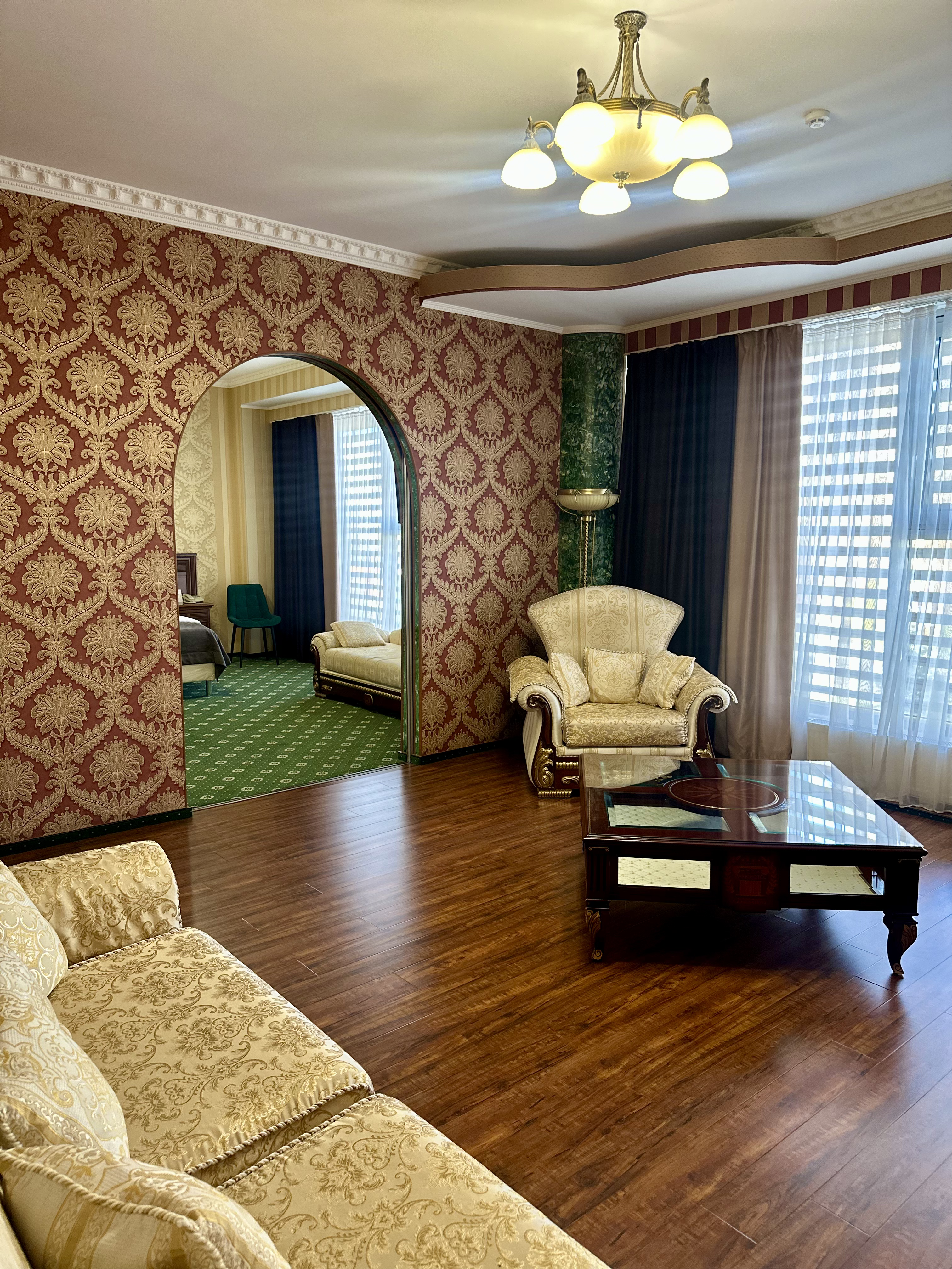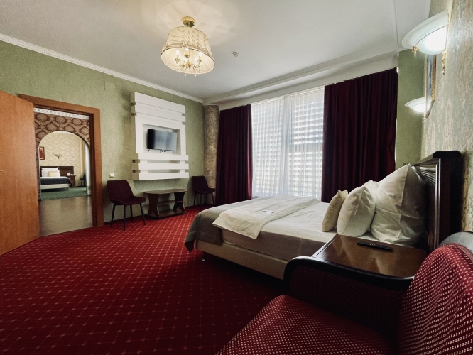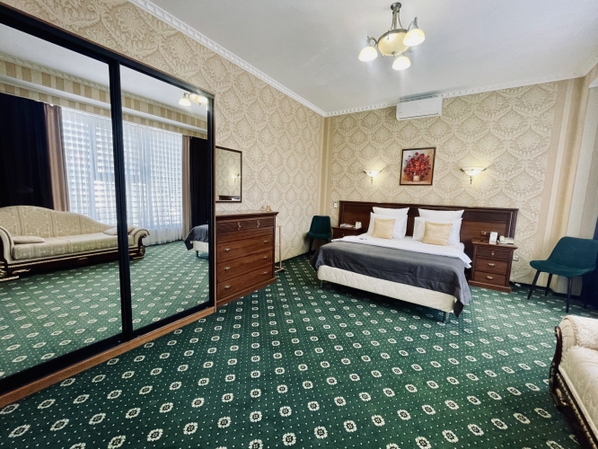 Номер категории «Сюит» — идеальное сочетание элегантности и уюта, созданное для тех, кто ценит истинный комфорт и изысканный стиль.